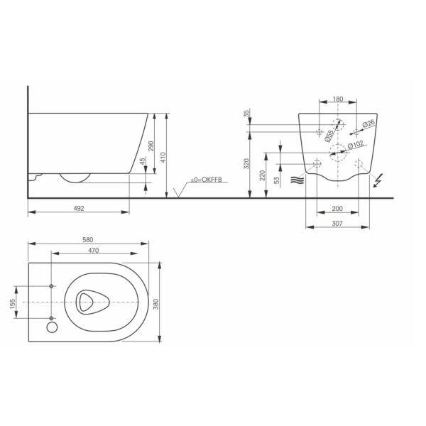 Bien sûr, Washlet ™ RW est équipé de toutes les caractéristiques de l'hygiène et du confort caractéristiques: pulvérisation d'eau tiède, siège chauffé, désodorisateur et séchage absorbant ODE. De plus, l'Ewater + propose le jet de baguette Washlet ™ et la cuvette des toilettes avec de l'eau électrolysée après utilisation.